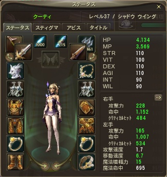 やーっとこさ集め終わりました~。 フルディーヴァニオンきた! ついにきた!ヽ(´ω`)ノ ■フラッシュレザーセットの効果 物理防御 +713 魔法抵抗力 +252 回避 +616 最大HP +970 最大MP +873 物理クリティカル +80 移動速度 +12% 最大飛行時間 +28 ■感想 セット効果のおかげでLv37の現在でHPは4134まで上がりました。 移動速度+12%に関してはちょっと体感できる程度かな? ラン使ってさらに+20%にすると「お、前より速くなった!」って感じでした。(移動速度を重視するなら足は速度20%ついてる防具のほうがいいね。) 飛行時間+28はかなり良い感じ、アビスの移動とか楽になった。 あと画像を見て分かるとおりクリティカルが484、534(Buffありだと584、634) 上がり過ぎwwwww調節しないと・・・。 とりあえずセット効果すげー!! ディーヴァニオンの良さはやっぱりHPの多さと飛行時間。 フラッシュレザーに至ってはクリティカルも伸びるのでGOOD! 防御力はやはり少し低めですが・・・。 プレート職以外はそこまで防御力は気にしないと思うので、シャドウはしばらく使えそうかな? 他の難点としては魔石スロットが各部位に3つしかないこと。 40台になってからは少しずつユニークに変えていく感じが良さげ。 いや~思えばAION開始3ヶ月でやっと集め終わったお・・・。 ちょっとのんびりやりすぎたかなwwwwwww でも結構きっつかったなー。 ずっと1キャラやってれば45ぐらいいけたような気もするけど・・・気にしないことにしよう(^ω^;) 5個あつまったんで、次はディーヴァニオン武器クエストやってます。 PR [Game Music] テイルズ オブ ファンタジアゲーム音楽紹介第三弾。 寒いなーなんか新BLOGからは日記ぽいこと全然書いてないなーってことに気づきましたwww