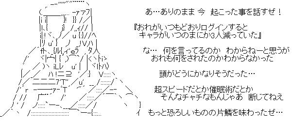 一日に100とかいった日はちょっと驚き! やっぱり記事が増えてくると検索に引っかかりやすくなるのかな? まぁうちにきても大した情報はありませんがwwwwwww 今日はプロフィールのところ少し更新してみました。 以前やってたMMOのキャラも載せておこうかな~と。 なんかファイル整理してたら昔のSSが出てきたもので・・・。 プレイしてたころのSS見ると、なんか懐かしくていいですよね。 まぁその勢いでキャラのページ作成って感じです。 ていうかね・・・驚いたのがMHFとかPSUの所有武器とかExcelでまとめてあったし!! ちょっと自分で「A型だな・・・」とおもったJENOSでした。 PR [AION] [潜入]魔界のレパル団をやってみた先日やっと38になりました。 [AION] あああああああああああああああああああ僕はもうキャラスロが5キャラ埋まってるんですが、たまにキャラクリで遊びたくなったときに 「Lv20↑のキャラだと削除申請しても7日間は消えない」 というのを利用して、普段使わないキャラを削除申請していたりするのです。 6キャラ目のシールドなんかはこの方法で30まで育てました。 ここまで書けば分かりますよね? うん、やっちまったああああああああああってことです(^ω^) えーと 30チャント、30ソード、25キュア 消えましたwwwwwwwwwwwwwww なんで申請解除し忘れたんだッ! こいつぁヘヴィだぜ・・・。 所持金や高価なアイテムはすべてメインキャラに移しておいたのが唯一の救いかな! うーん、全部愛着あったキャラなのがショック(´・ω・`) で、残ったのは メインの38シャドウ、サブの32ボウ、最後に育てた30シールド ここまではOK! 残り2キャラが遊びで作った 偽クラウドのソードマンとおやじウィザード/(^o^)\ もちろんLv1だよ!! こいつら消してもう一回ソードとキュア作ってやるかwwwwwっうぇうぇwwwwww 友達と遊ぶ用に20台キャラ残しておきたいし。 あ、偽クラウド育てるのも手か・・・ッ!? [Game] [PS3] FINAL FANTASY XIII 主題歌FF13の発売までついにあと1ヶ月ちょっとになったわけですが。